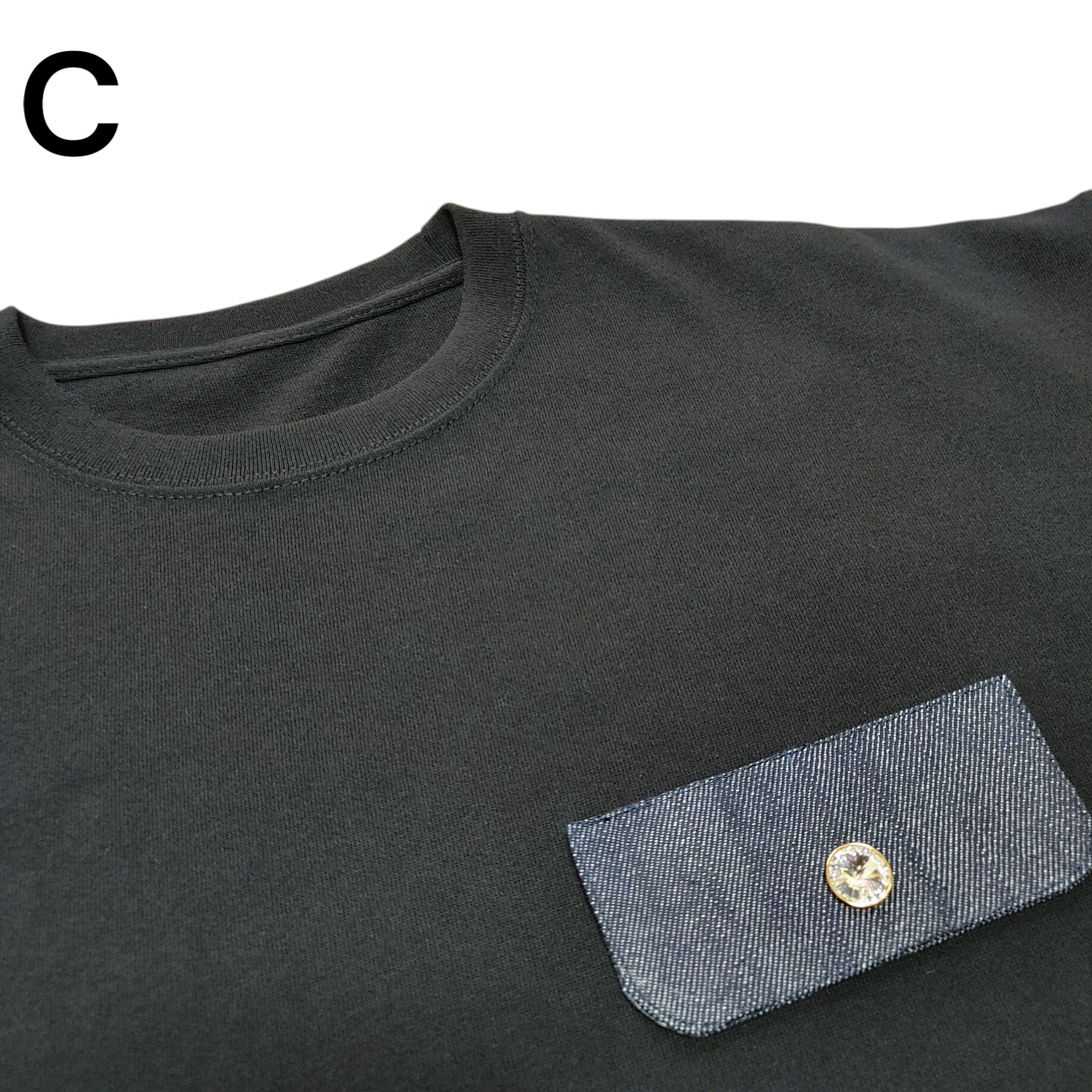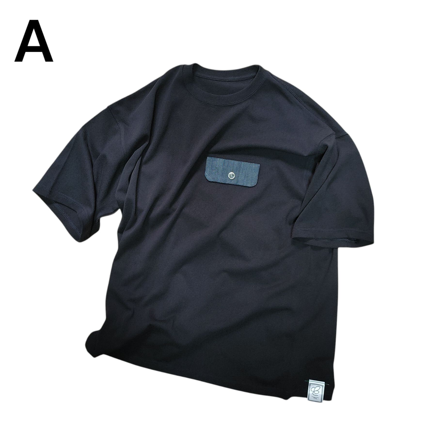 ★A・・・左胸にフラップを付けた状態で、フラップには釦を装着済です。釦は画像Qのセット(3種類)の中から②をセレクトしました。白く映っているものはブランドネームです