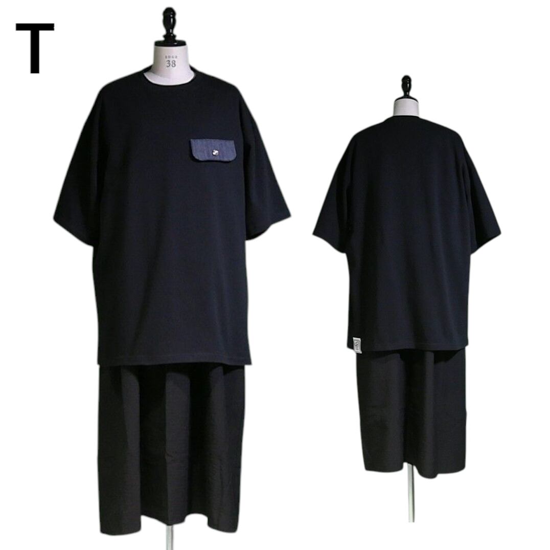 ★T・・・Tシャツを使ったレディースコーデです。XLサイズを着ています(トルソーサイズは、[身長] 156cm [バスト] 76.0cm[ウエスト] 59.0cm [ヒップ] 80.0cm [背肩巾] 36.0cm となります)。Tシャツの下にはワンピースを着ています